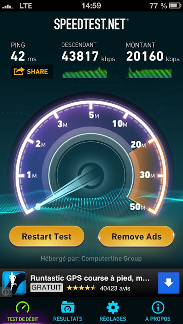 Je ne compare pas ces deux formules. J’illustre simplement quelles peuvent en être les limites. Par ailleurs, vous semblez limité à 40 Mbits/sec avec votre iPhone 5. Avec deux barrettes, je monte à plus de 60 Mbits/sec avec un Lumia 920…