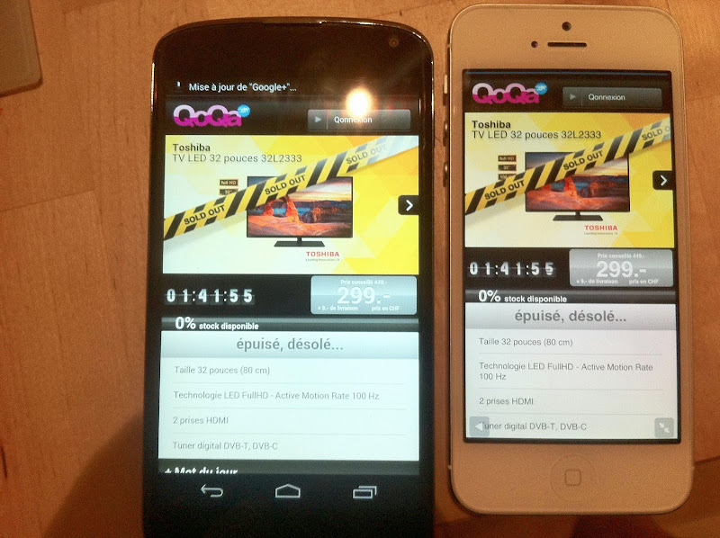 Pris sur le site mobile qoqa, numéro 1 pour les ventes flash en suisse romande.